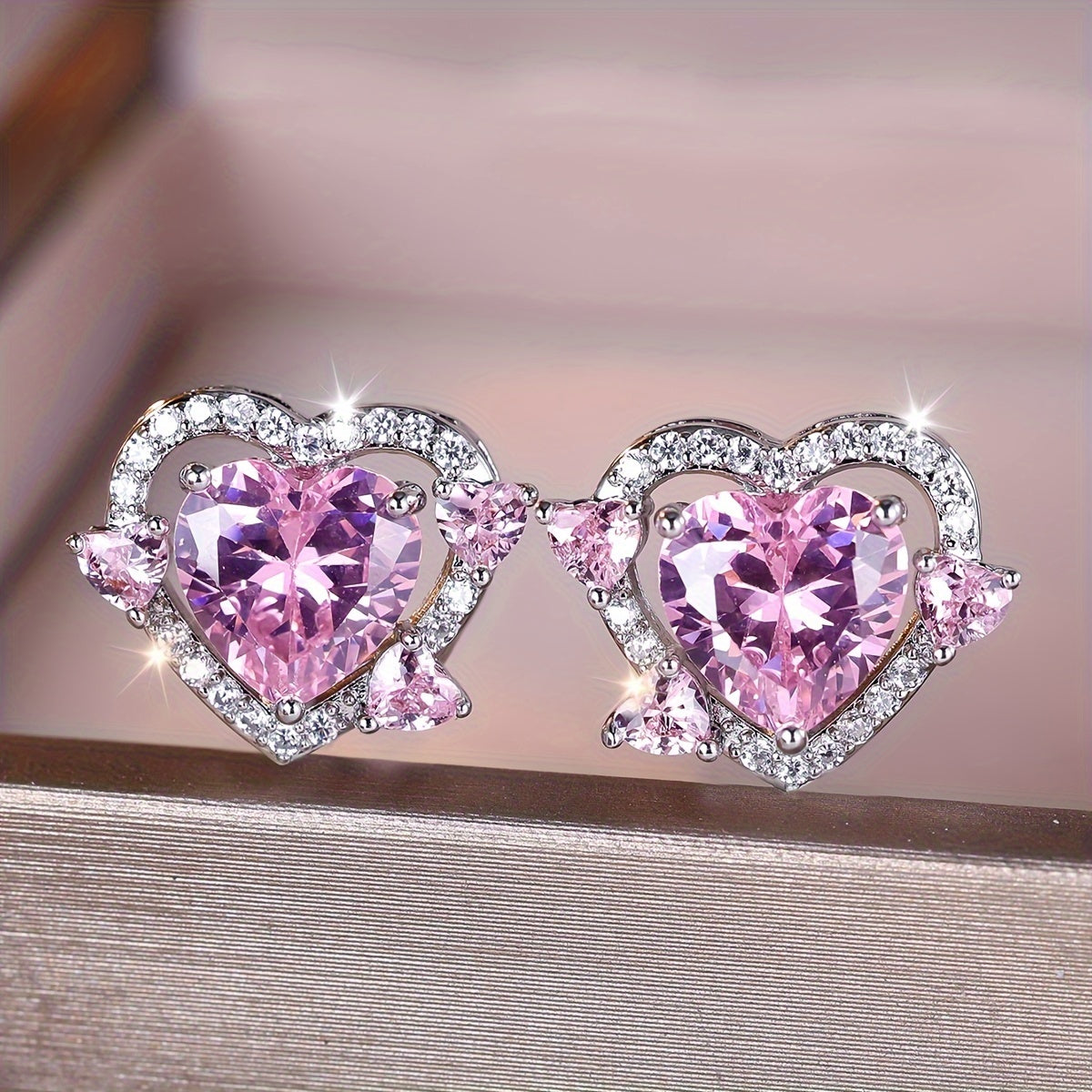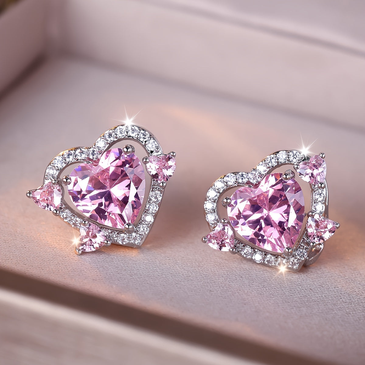Fashionable Pink Zirconia Stud Earrings