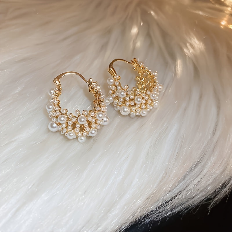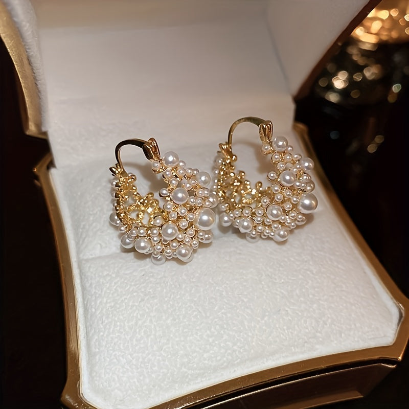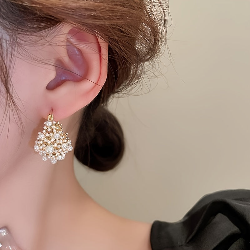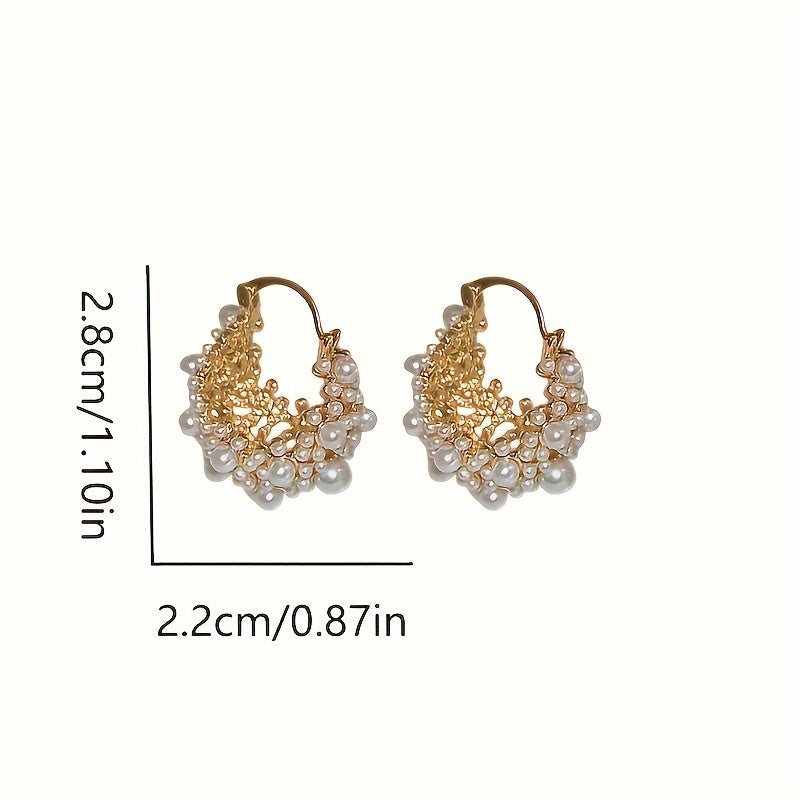 Hollow Flower Basket Earrings with Faux Pearls