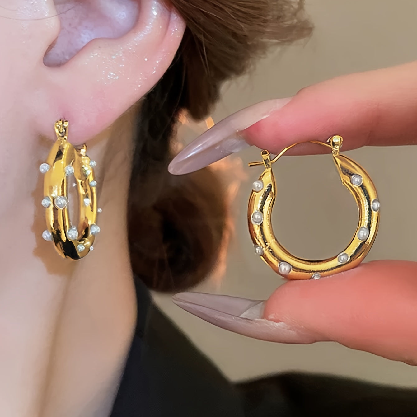 These hoop earrings are lightweight, shiny, and very comfortable to wear all day. They look elegant with both casual and dressy outfits. A wonderful everyday accessory!