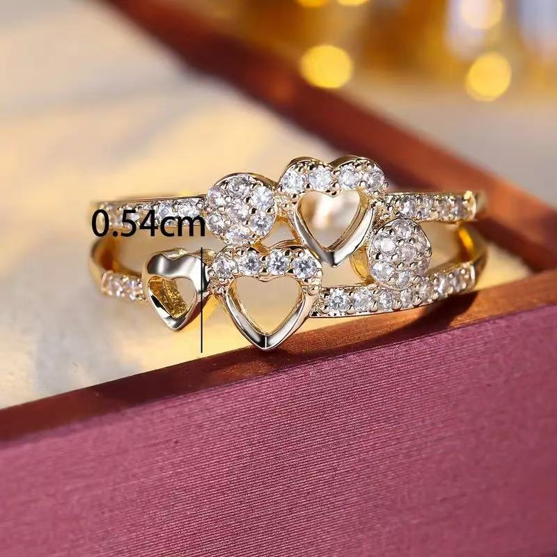 Double-Band Heart Ring with Synthetic Cubic Zirconia